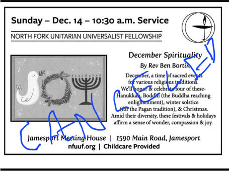 North Fork Unitarian Universalist Fellowship places ads in the local Suffolk Times weekly newspaper.